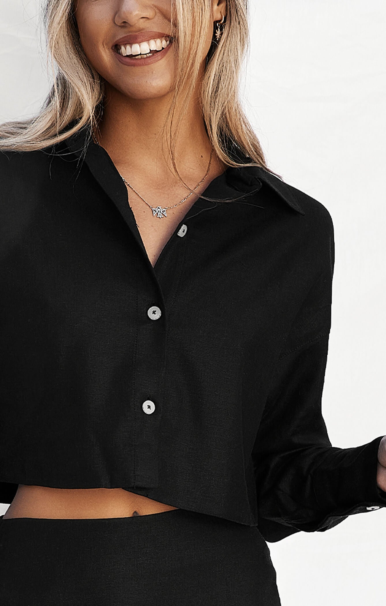 THE LINEN LS CROP SHIRT - BLACKSame-day dispatch Mon-Fri, before 2pm AEDT